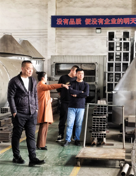 馬總、于經(jīng)理帶領(lǐng)客戶(hù)參觀考察了玉米壓片機(jī)設(shè)備制造車(chē)間,客戶(hù)實(shí)地考察制造蒸汽玉米壓片機(jī)設(shè)備的用料和部件工藝,通過(guò)現(xiàn)場(chǎng)考察和交流,客戶(hù)對(duì)玉米壓片機(jī)設(shè)備有了更為直觀的了解。