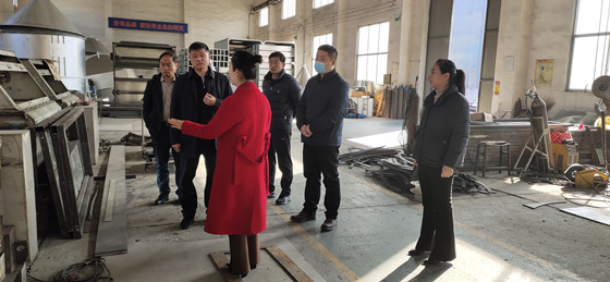 熱烈歡迎淄川區(qū)領導蒞臨廣富機械有限公司 調研指導蒸汽玉米壓片機生產工作